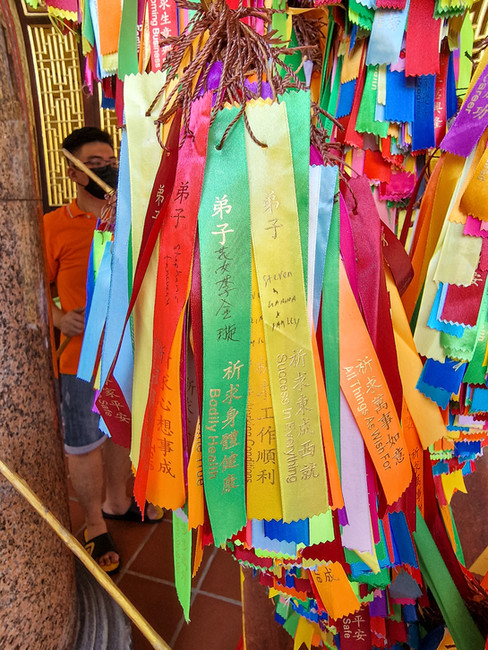 Im Tempel konnte man auch gegen eine kleine Spende ein Band mit einem Spruch auswählen, den Namen drauf schreiben und das Band dann dort zu den vielen anderen hängen.