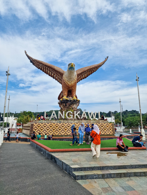 Weiter ging es mit dem Roller zum Wahrzeichen von Langkawi. Die riesige 12 Meter hohe Adlerstatue Eagle Square befindet sich am Hafen von Kuah und ist ein beliebter Spot. Der Legende nach stammt Langkawis Name von den zwei malaiischen Wörtern – „Helang“ (Adler) und „Kawi“ (Rotbraun).
