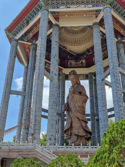 Hier findet man dann auch den riesigen Pavillon, in dem die fast 37 Meter hohe Kuan Yin Statue, die Göttin der Barmherzigkeit, steht. Ein imposanter Anblick von unten, hoch kann man aber leider nicht.