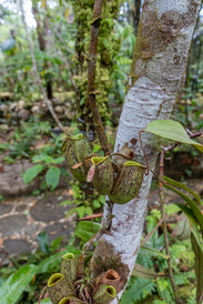 Am Ende des Naturlehrpfades angekommen ging es für uns noch weiter. Wir wollten zum Kopi Hutan Café und zum „The Monkey Cup Garden“. Das Dschungelcafé am Penang Hill liegt auf 730 m Höhe und ist damit das höchstgelegene Café auf der Insel Penang. Kopi bedeutet auf Malaiisch übrigens Kaffee und Hutan ist das malaysische Wort für Wald. Das Café ist wirklich liebevoll gestaltet und wir machten hier eine kleine Auszeit. Direkt nebenan befand sich dann auch der Monkey Cup Garden. Er ist der einzige Kannenpflanzen-Garten (Nepenthes) auf der malaysischen Halbinsel und beherbergt über 100 verschiedene Arten von Kannenpflanzen. In unseren Breitengraden sind diese Gewächse auch als fleischfressende Pflanzen bekannt. Hier wachsen Sie im Dschungel und sind gefüllt mit einer Flüssigkeit, welche für Insekten tödlich, aber für Säugetiere nicht schädlich ist. Daher wurde schon oft beobachtet, dass sich durstige Affen an ihnen bedienten. Sie nehmen einfach eine der Kannen, wie einen Becher und trinken aus ihnen. Daher werden diese Pflanzen auch umgangssprachlich als Monkey Cup, also Affenbecher bezeichnet.