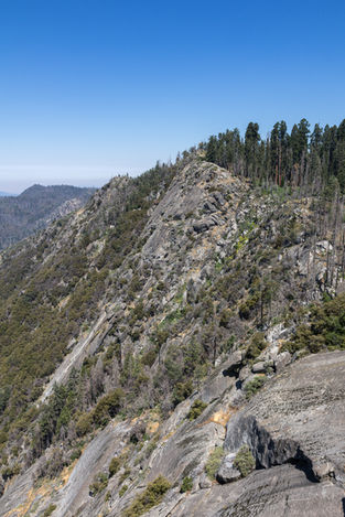 Oben angekommen wurden wir mit einer fantastischen 360°-Aussicht belohnt! Auf der einen Seite sahen wir die Gipfel der Great Western Divide der Sierra Nevada, auf der anderen Seite schlängelte sich der General Highway durch den tiefen Middle Fork Canyon. Einfach nur beeindruckend! Wir blieben eine ganze Weile oben und genossen die Aussicht, bevor wir uns an den Abstieg machten.